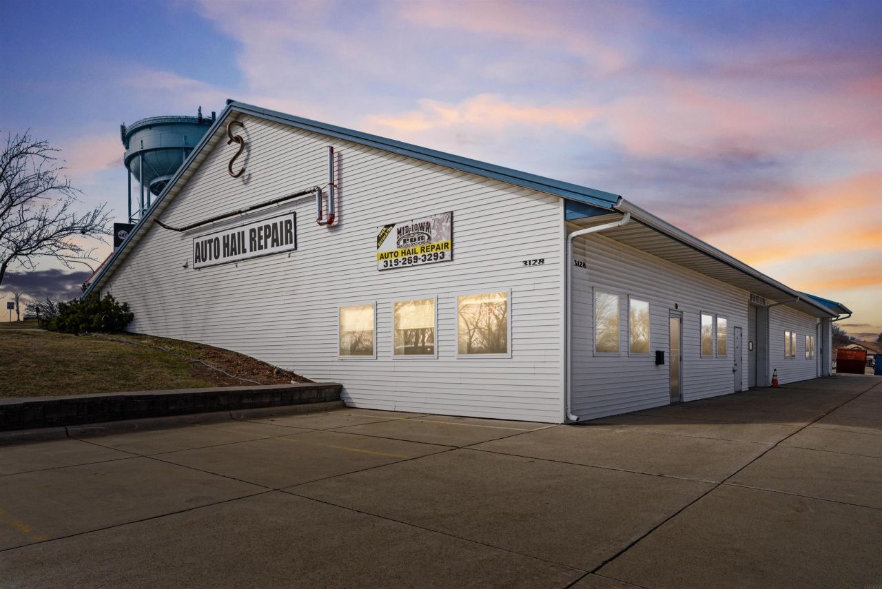3128 University Ave ??? Waterloo, IA Commercial building ideal for auto repair, body shop, contractor shop, detailing business, service shop, or flex commercial use located on high-visibility University Avenue with strong daily traffic counts. This well